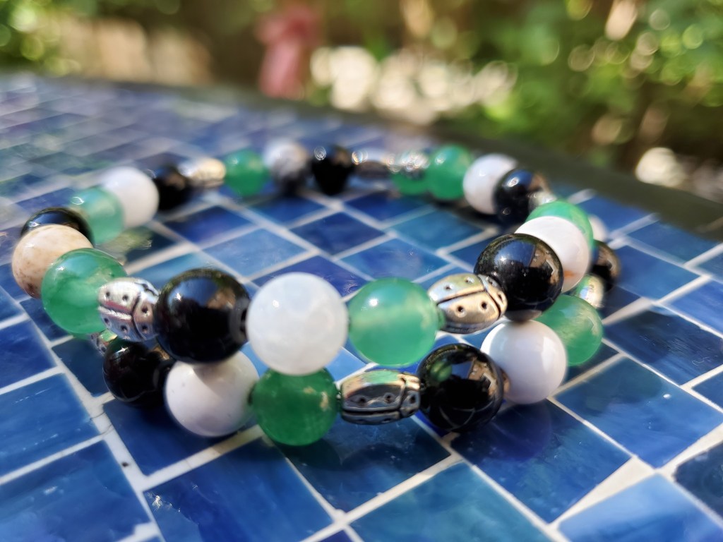 I tumble my own stones and crystals, or I buy authentic stones, crystals, glass, ceramic, and metal beads.