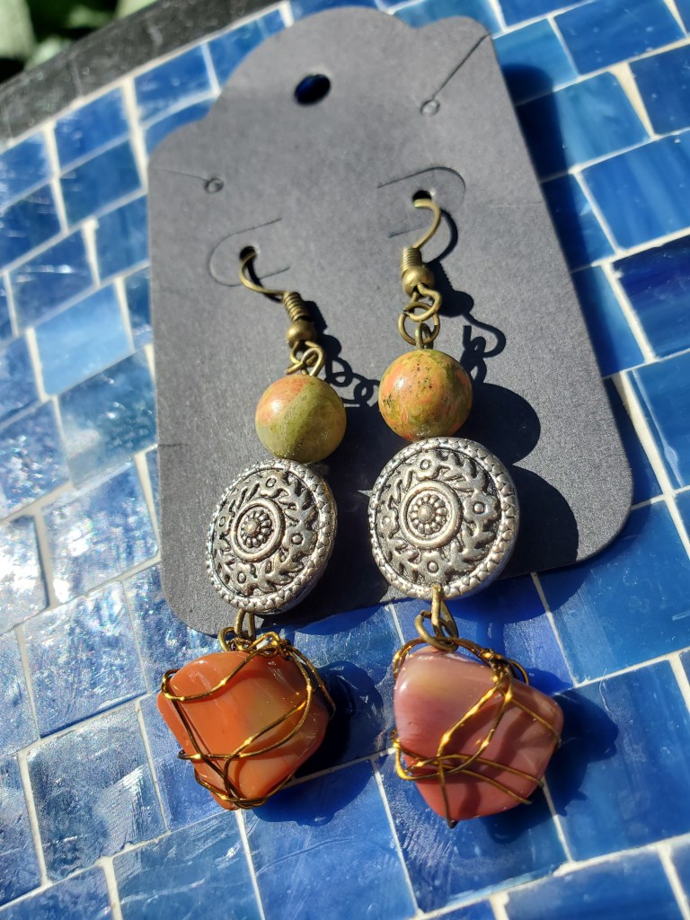 I wire wrap and assemble pieces based on what I think works in the moment, and I test all pieces for strength and durability.